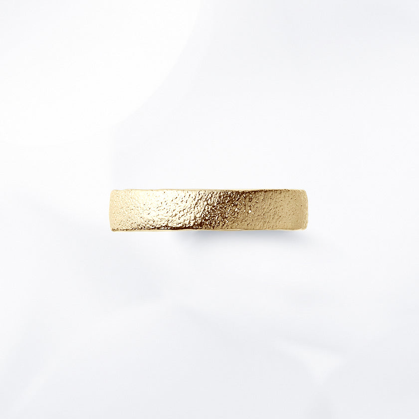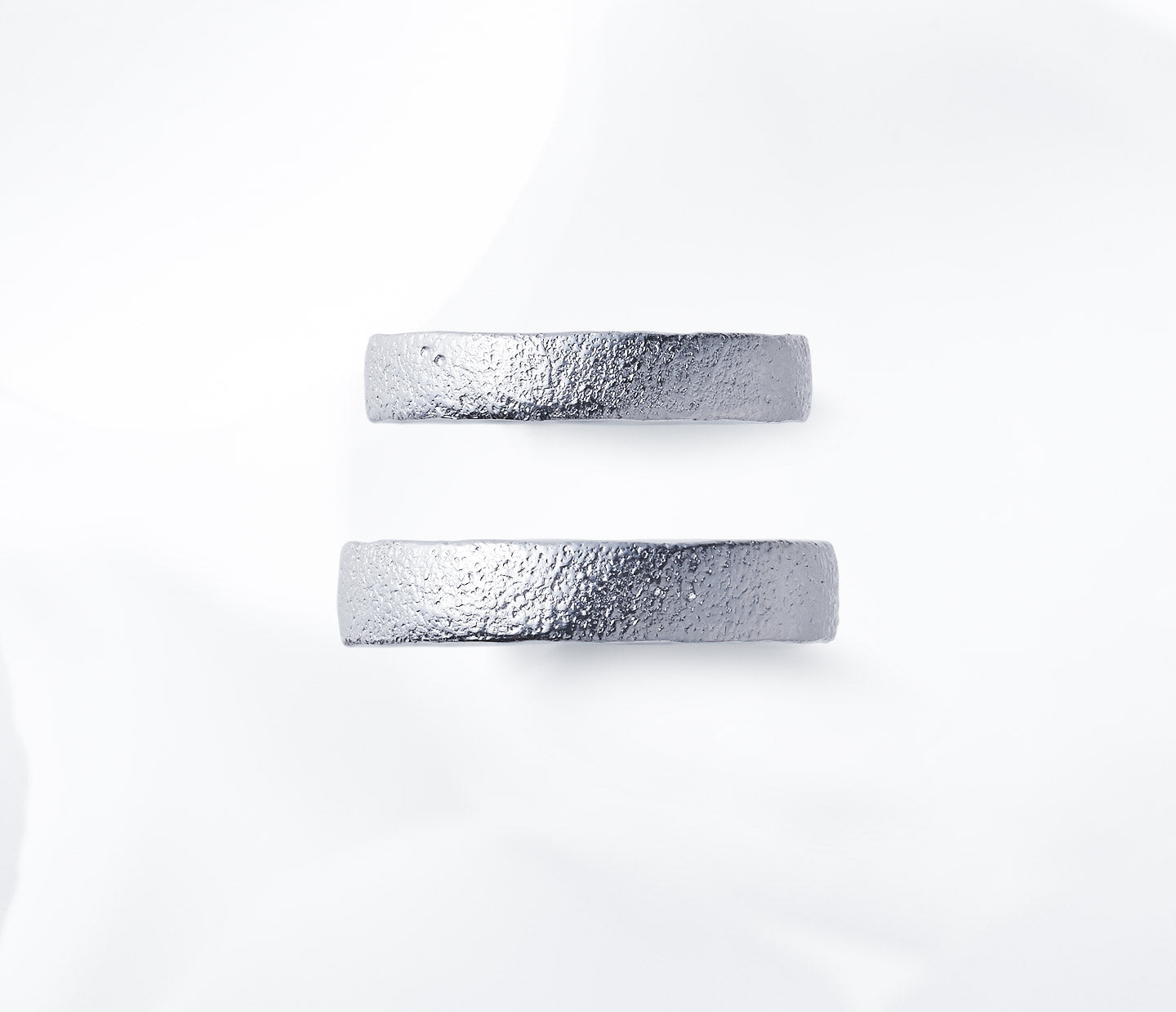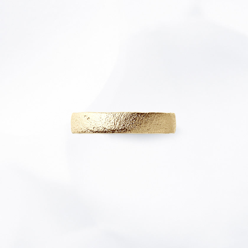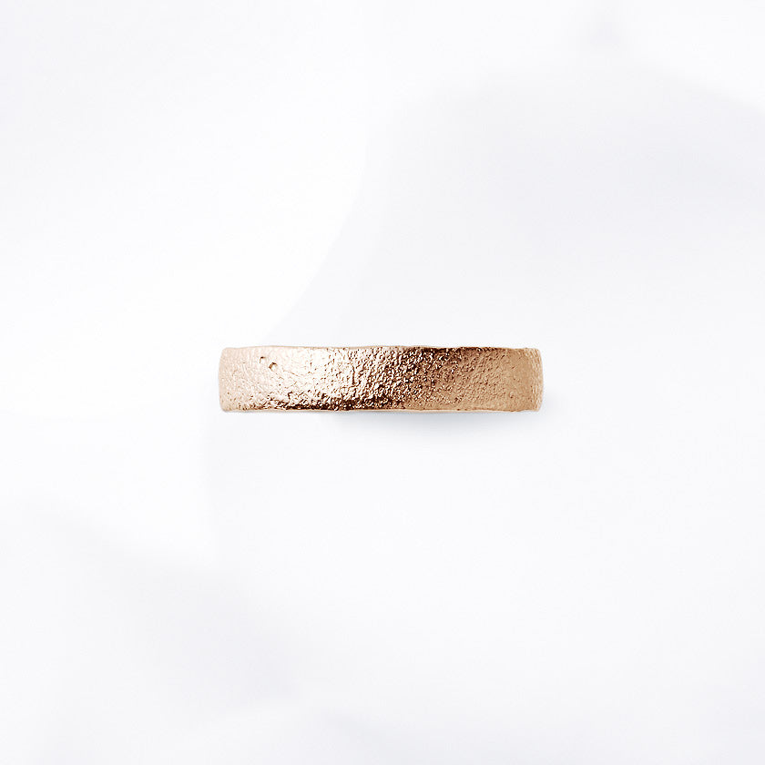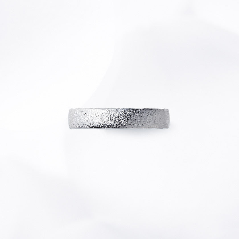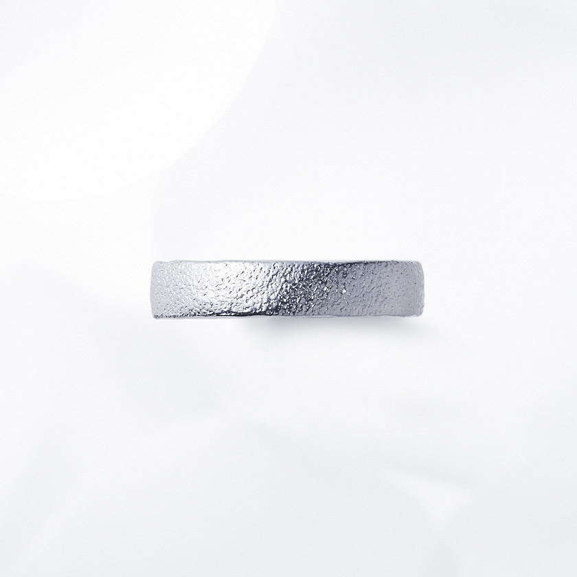 CHOJIRO is named to honor the founder of the raku pottery tradition, a style of ceramics developed alongside the art of tea ceremony for hundreds of years. Reminiscent of a handcrafted tea bowl, the CHOJIRO ring band has a slightly irregular line and textured appearance. As with the atmosphere of a quiet, reflective tea gathering, CHOJIRO embodies the hope for a marriage filled with peaceful, heartfelt moments.