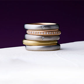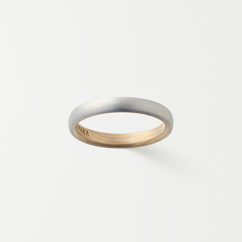Much like the rings of a tree tell the story of life, the KYO MOKUME collection represents the months and years spent in love by combining the most precious of metals to form a gorgeous wood grain pattern. NIWAKA has taken the time-honored mokume art to even greater heights by making use of both traditional and modern metalworking techniques. The rings in this collection are well suited to stacking or pairing with other jewelry, and their refined lines and smooth inner bands make them incredibly easy to wear.-