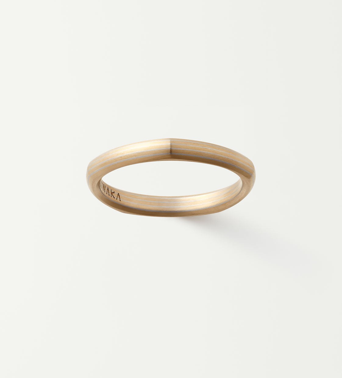 Much like the rings of a tree tell the story of life, the KYO MOKUME collection represents the months and years spent in love by combining the most precious of metals to form a gorgeous wood grain pattern. NIWAKA has taken the time-honored mokume art to even greater heights by making use of both traditional and modern metalworking techniques. The rings in this collection are well suited to stacking or pairing with other jewelry, and their refined lines and smooth inner bands make them incredibly easy to wear.-