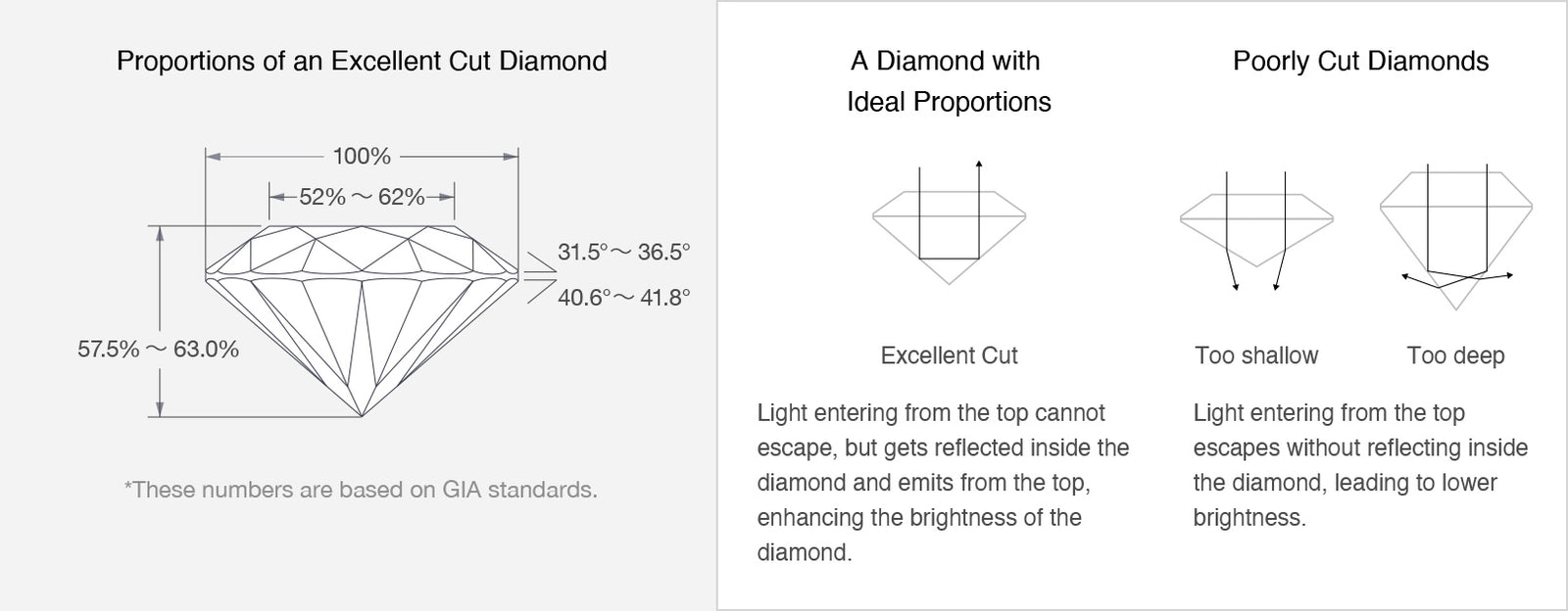 Jewelers around the world use the grading system developed by the Gemological Institute of America (GIA) that analyzes the carat weight, color, clarity, and cut of each gem. These are known as the 4Cs.