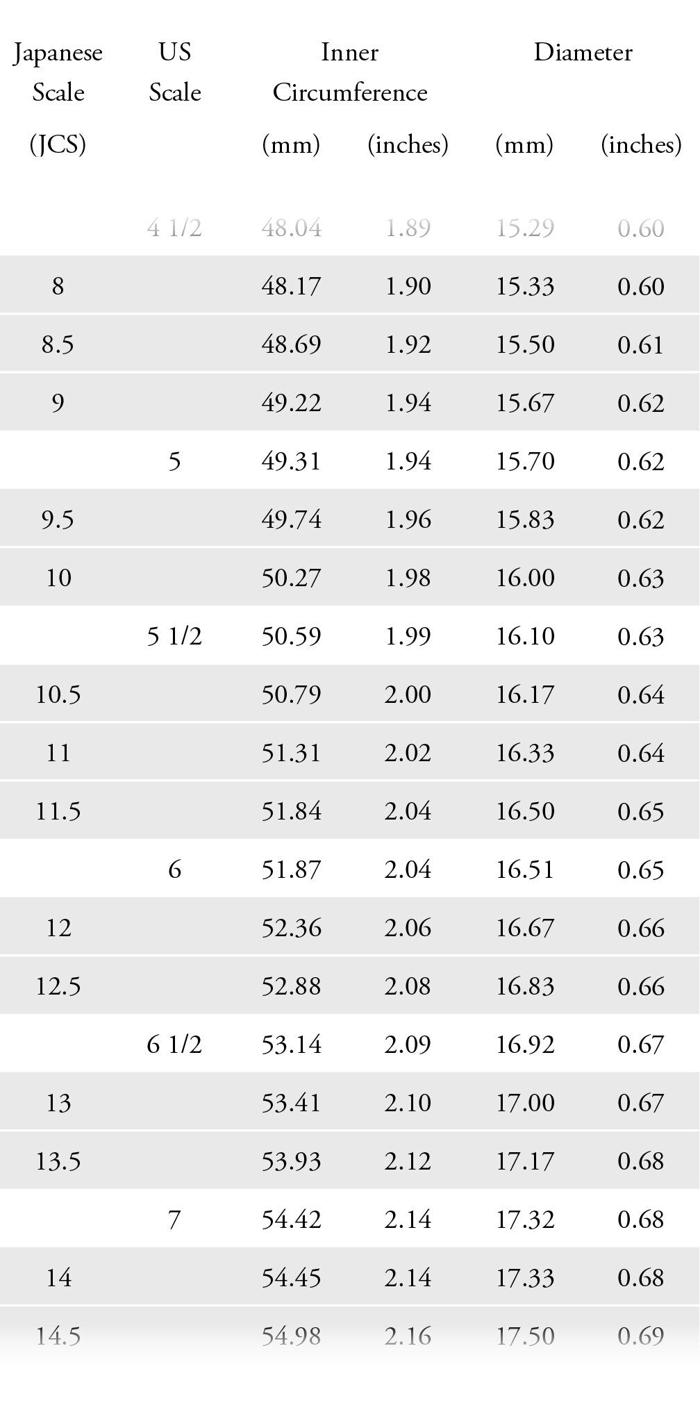 For all other jewelry, please visit the NIWAKA Brand Website >Japanese Ring Size Chart
