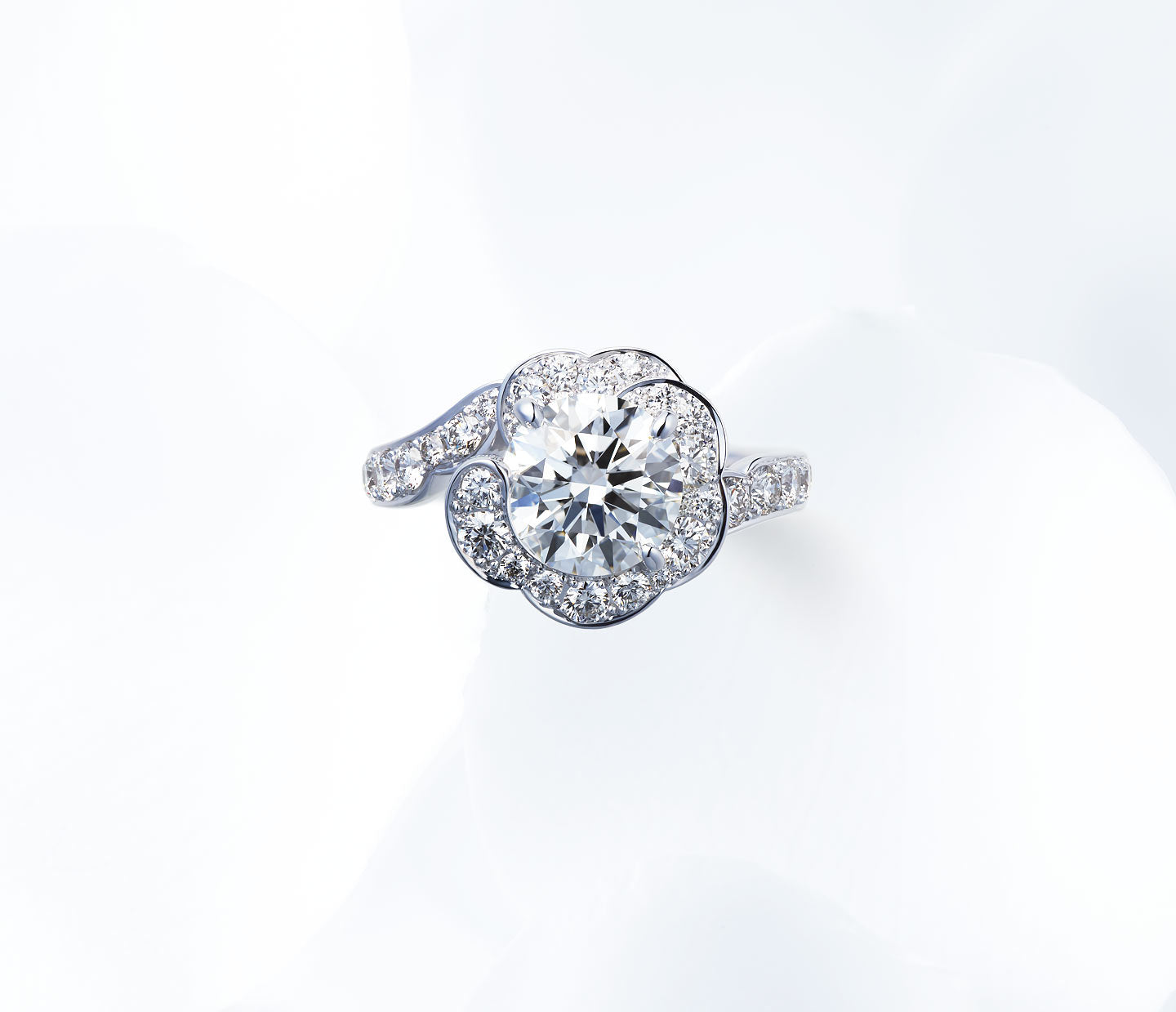 HANAURARA, which takes its name from a combination of the characters for “flower” and “splendor”, celebrates the natural, elegant beauty of flowers in the design of each ring. The HANAURARA engagement rings use the wavy contours of the band or swirls of diamonds around the center stone to evoke the image of petals, and the HANAURARA wedding rings utilize the same floral wave or subtle notches on the interior of the band. Above all, HANAURARA embodies the hope for the couple to enjoy their new life together to the fullest.