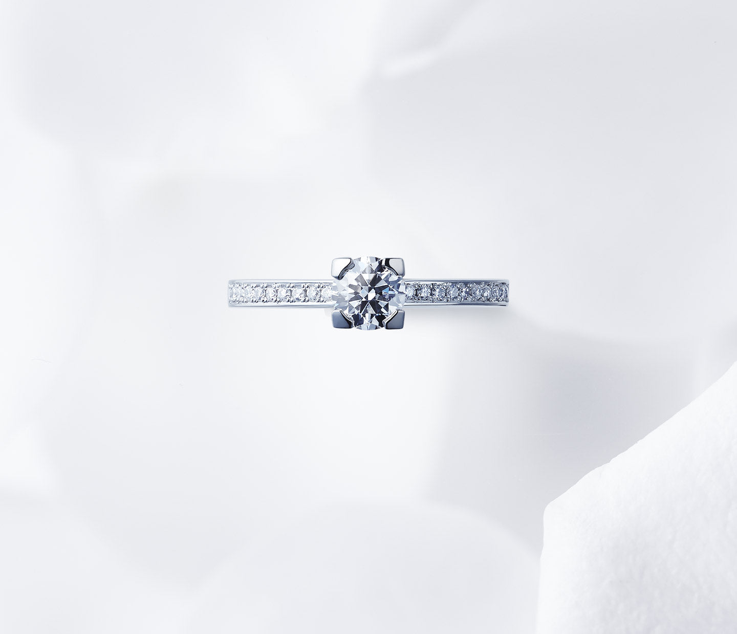 KOKORO shares its name with this beautiful character. Rendered in stylized form on two sides of the center diamond, it supports the dazzling gemstone with artistic lines of precious metal. Symbolizing sincerity, honesty and faithfulness, KOKORO encapsulates the hopeful future that becomes possible when two hearts are in love.
