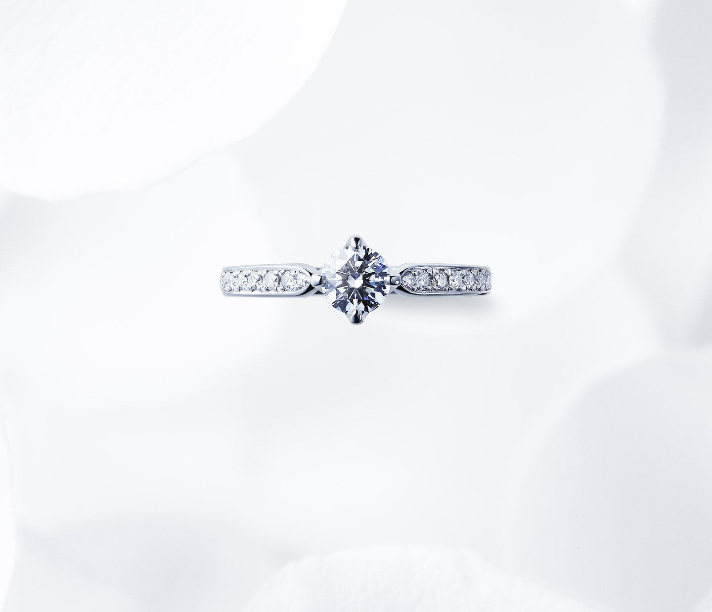 SUIREN shares its name with the Japanese word for “water lily”. The SUIREN engagement ring evokes this resemblance most poignantly in the flowering shape of the center diamond dais, while the SUIREN wedding ring pays homage to the charming lily pads. In the Japanese language of flowers, water lilies carry the meaning of an innocent heart full of trust and kindness, the very same feelings embodied by SUIREN.