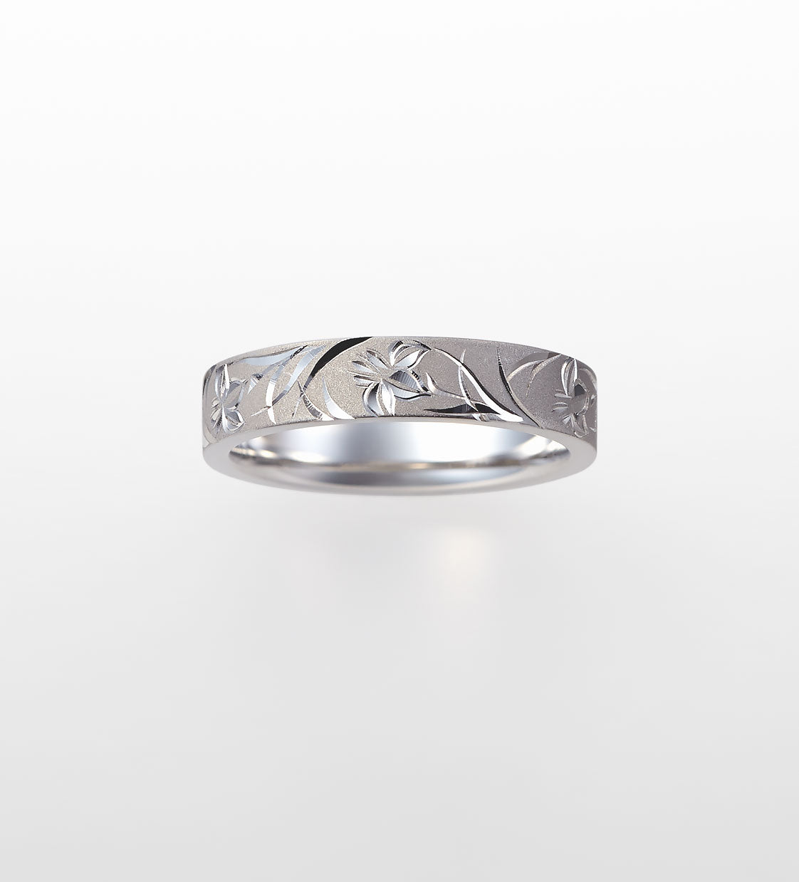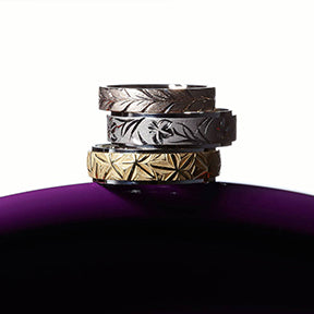 AI NO KAZE is named after a northern wind that brings cool air from the sea in summer, and also plays on the Japanese words for “love” and “indigo”, the color of irises. Capturing the intensity and beauty of an idyllic summer scene, engravings of magnificent irises and their blade-like leaves sweep across the surface of the band. AI NO KAZE conveys the wish that you will enjoy a future as rich as a gorgeous summer day.