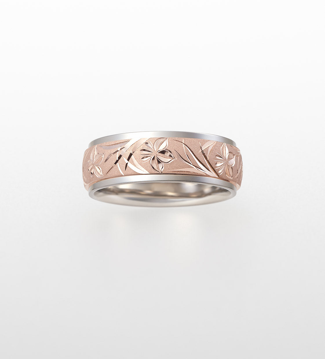 AI NO KAZE is named after a northern wind that brings cool air from the sea in summer, and also plays on the Japanese words for “love” and “indigo”, the color of irises. Capturing the intensity and beauty of an idyllic summer scene, engravings of magnificent irises and their blade-like leaves sweep across the surface of the band. AI NO KAZE conveys the wish that you will enjoy a future as rich as a gorgeous summer day.