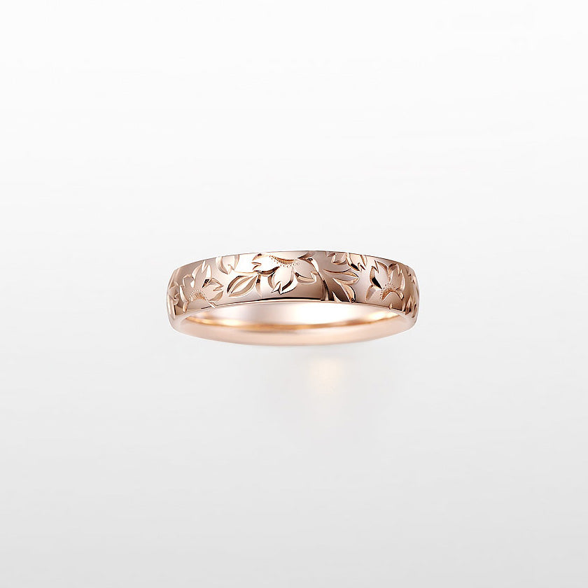 HANAGASUMI, written with the characters for “flowers” and “mist”, features engravings of classic sakura. As if drifting on a gentle spring breeze, flowers in full bloom, half-opened blossoms and delicate petals float along the band, carrying the hope that you will enjoy a life just as brilliant as an eternal spring.