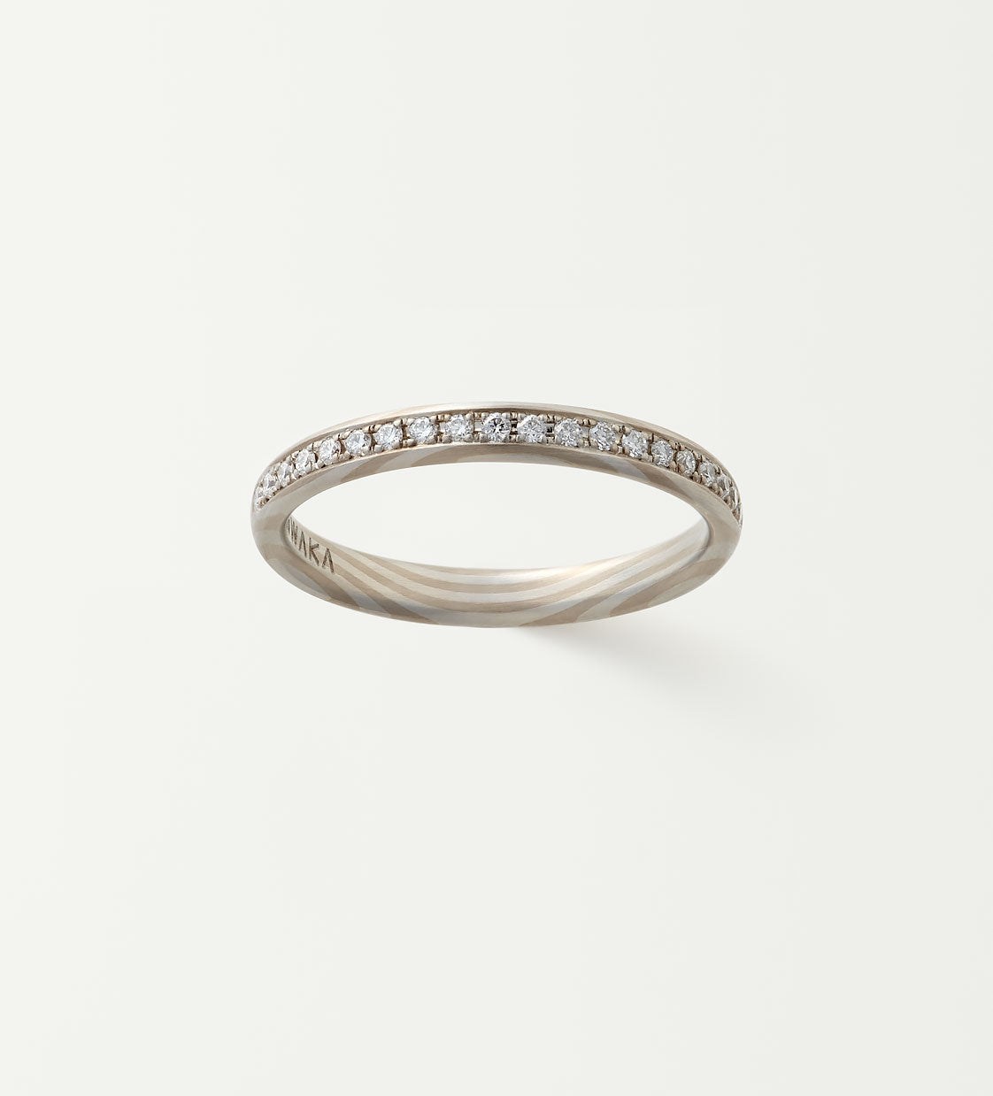 Much like the rings of a tree tell the story of life, the KYO MOKUME collection represents the months and years spent in love by combining the most precious of metals to form a gorgeous wood grain pattern. NIWAKA has taken the time-honored mokume art to even greater heights by making use of both traditional and modern metalworking techniques. The rings in this collection are well suited to stacking or pairing with other jewelry, and their refined lines and smooth inner bands make them incredibly easy to wear.-