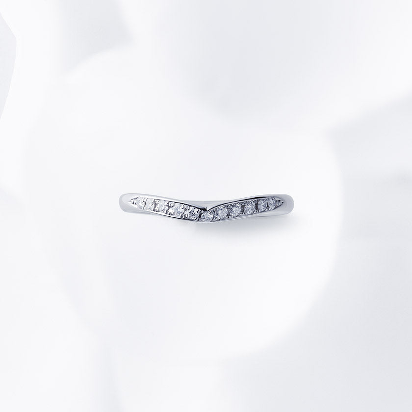 SUIREN shares its name with the Japanese word for “water lily”. The SUIREN engagement ring evokes this resemblance most poignantly in the flowering shape of the center diamond dais, while the SUIREN wedding ring pays homage to the charming lily pads. In the Japanese language of flowers, water lilies carry the meaning of an innocent heart full of trust and kindness, the very same feelings embodied by SUIREN.